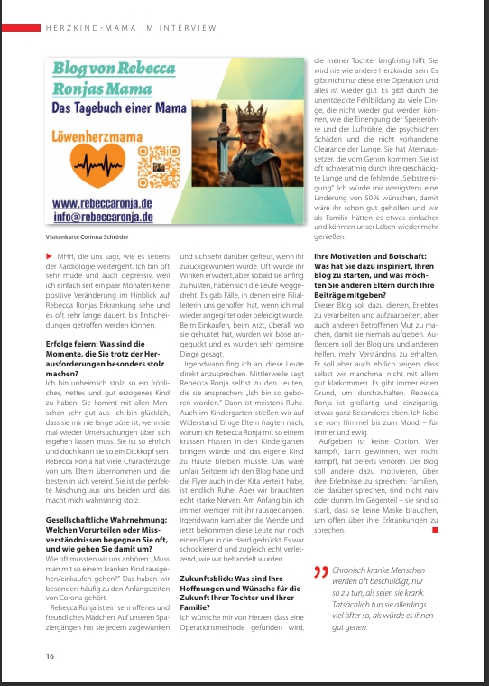 Großes Interview im Herzblick von unserem Herzkind e.V. in der Ausgabe 1/2025